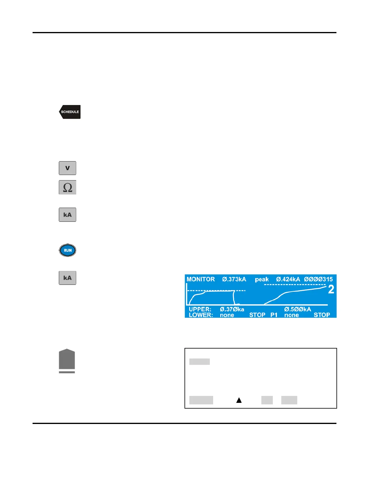 From the MONITOR keys section on the front panel, press the kA (current) key and observe