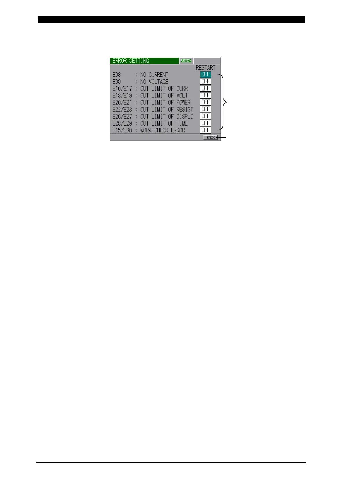 ERROR SETTING Screen