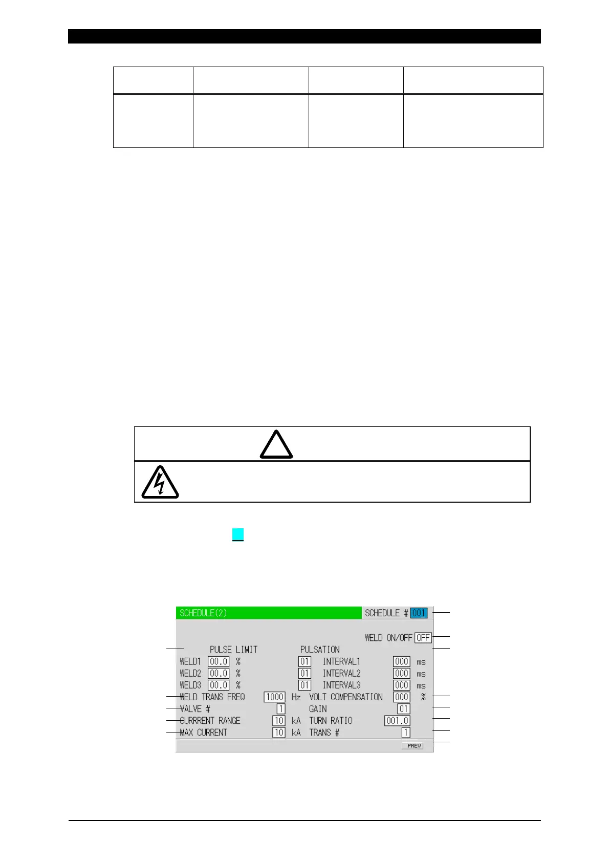 Set the welding current for WELD1, WELD2, and WELD3, respectively.
