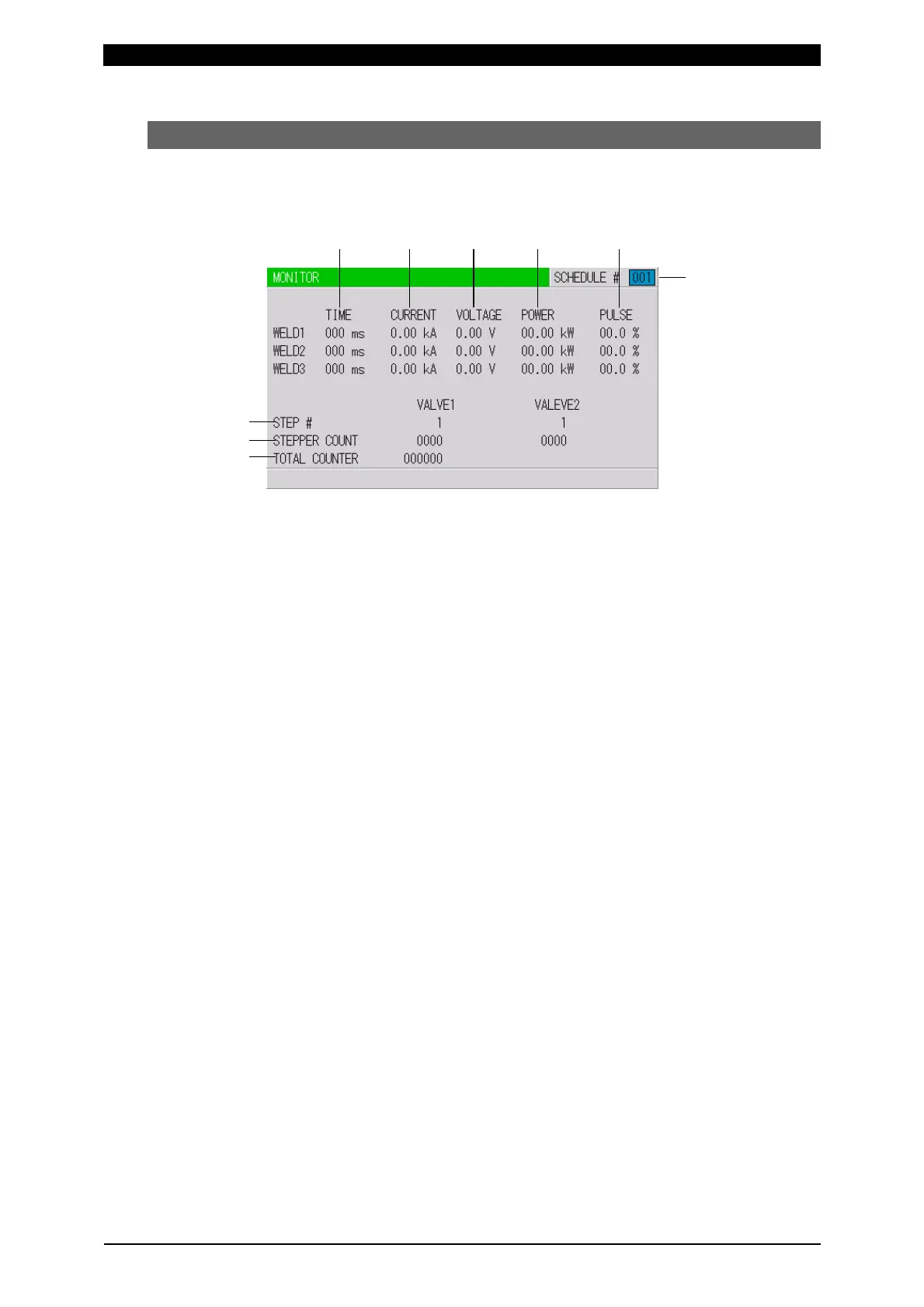 Set the No. of the SCHEDULE to monitor. The measured values (welding current,