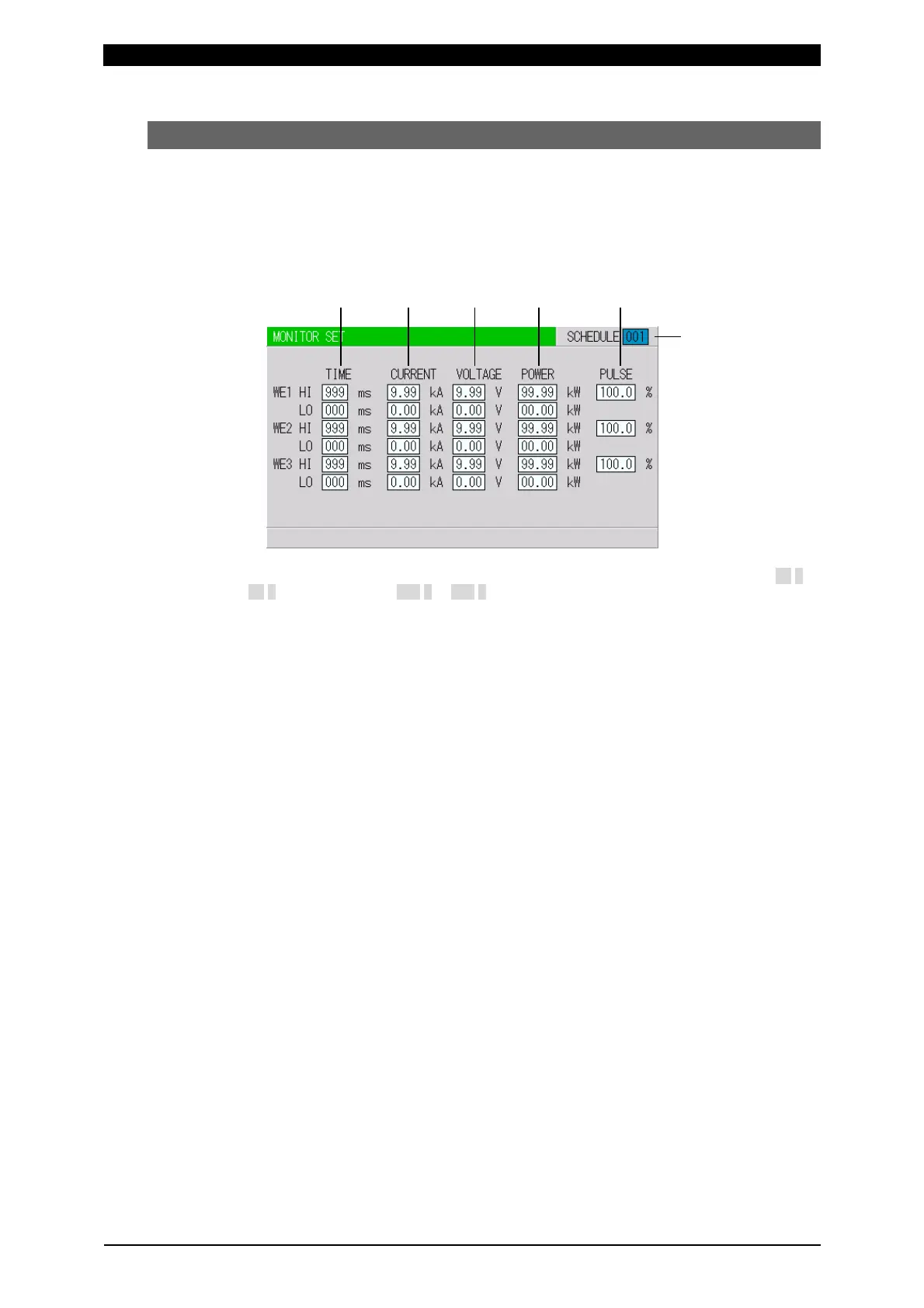 Set the upper limit (HI) and lower limit (LO) of the electric power for each of WE1,