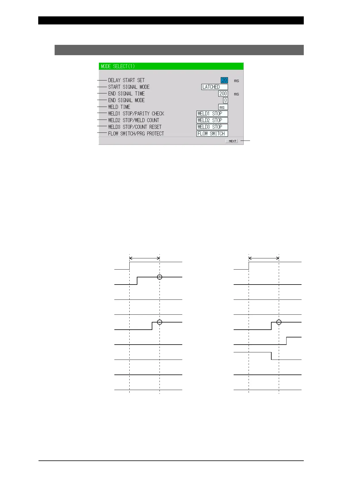 One welding condition is determined via DELAY START SET, a value
