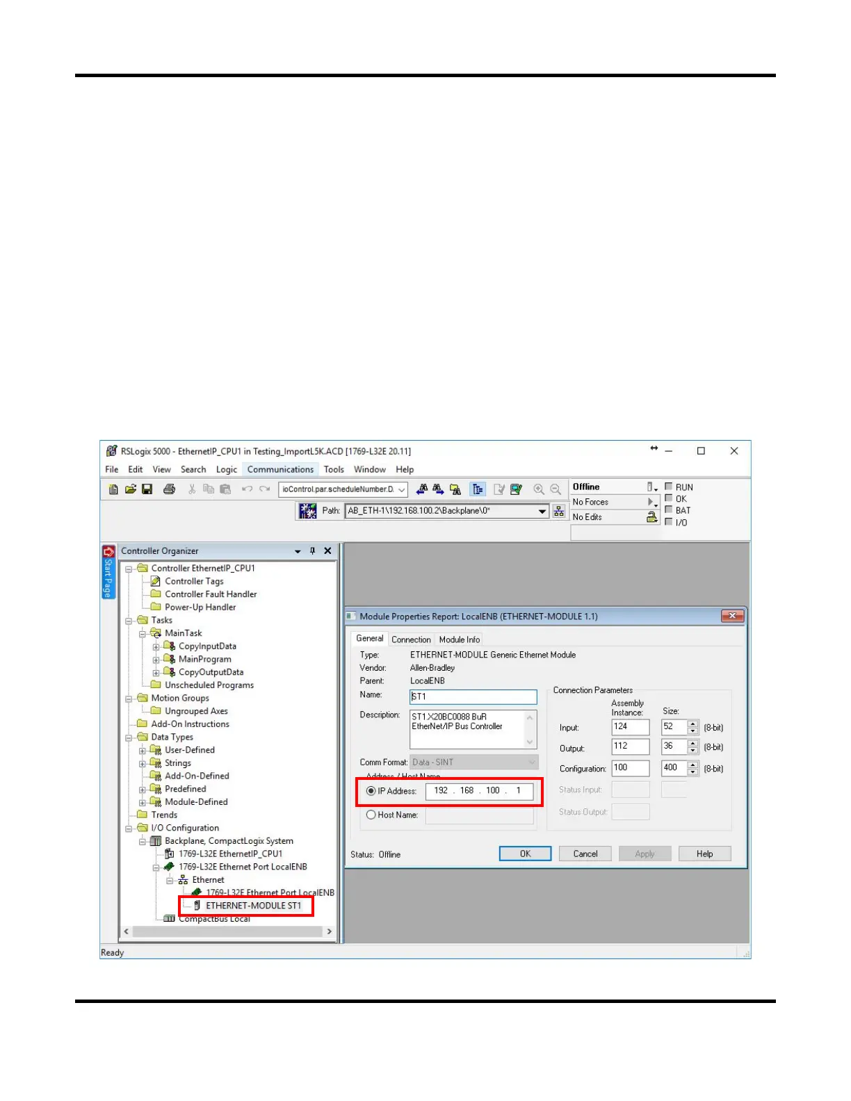 shown below to open the Module Properties Report window and verify the IP address. If the bus