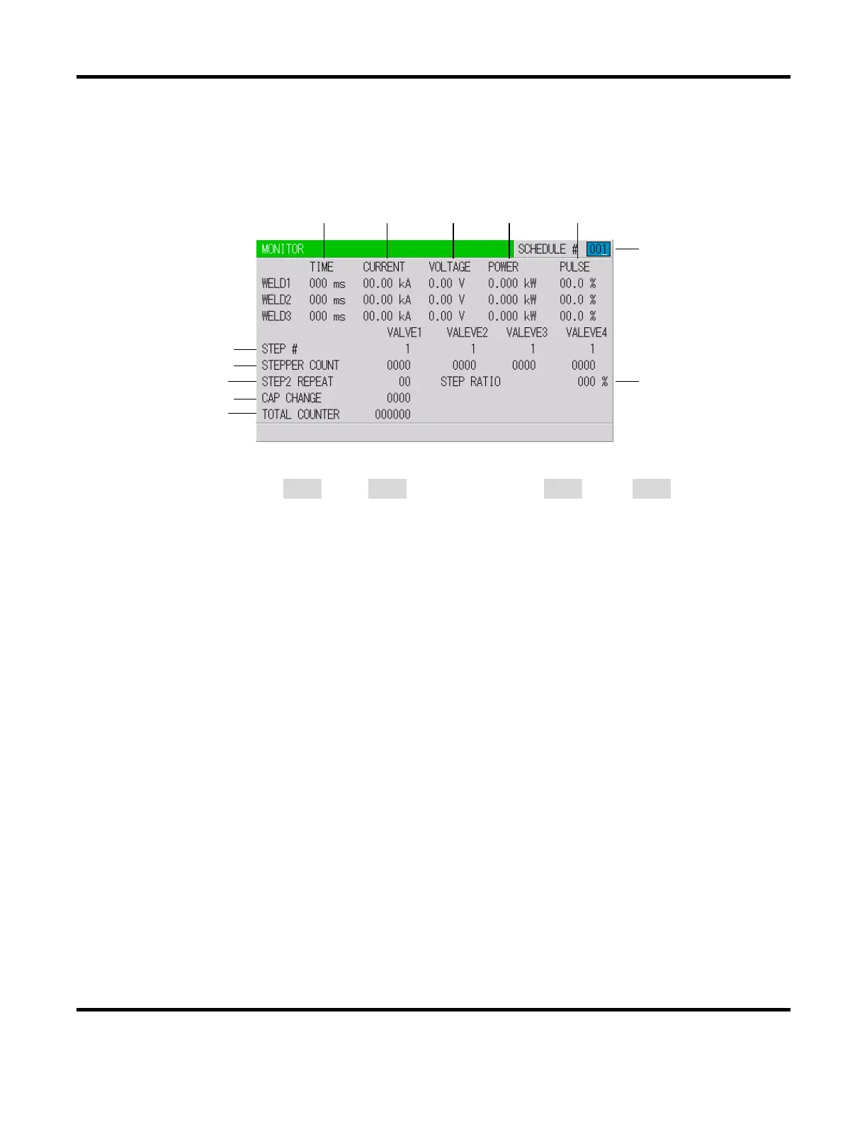 Set the No. of the SCHEDULE to monitor. The measured values (welding current, voltage, etc.)