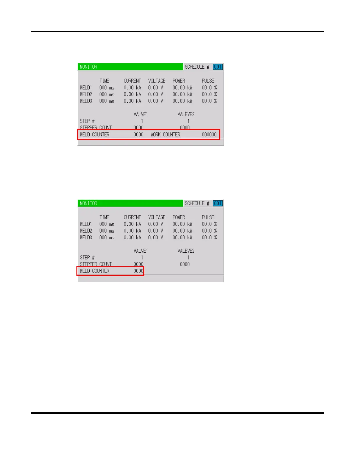 3. When WELD2 STOP/WELD COUNT is WELD2 STOP and COUNTER is WORK: