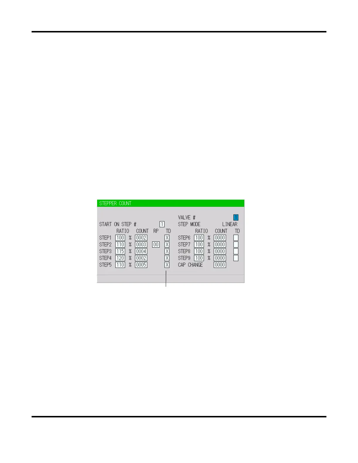 occurs) and CAP CHANGE is 10, prior notice is given when the stepper count is 990.