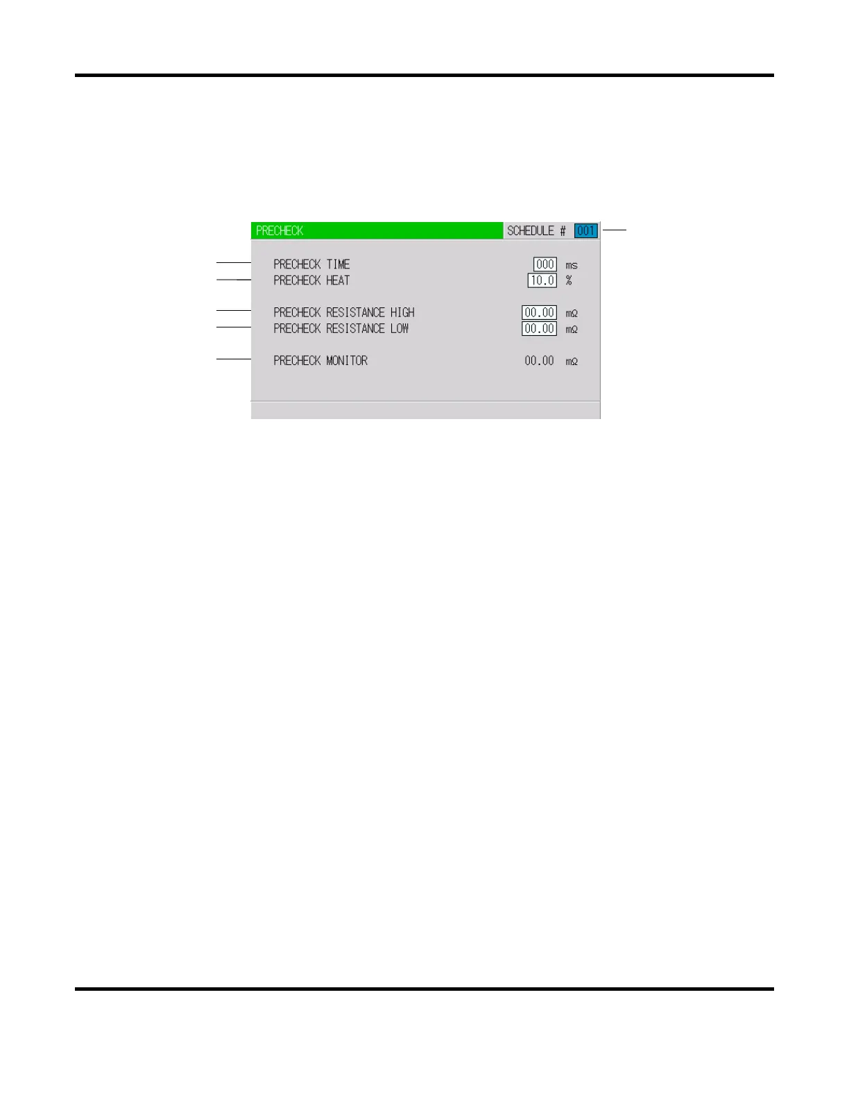 Screen for setting the weld time and pulse width for resistance pre-check welding. The resistance