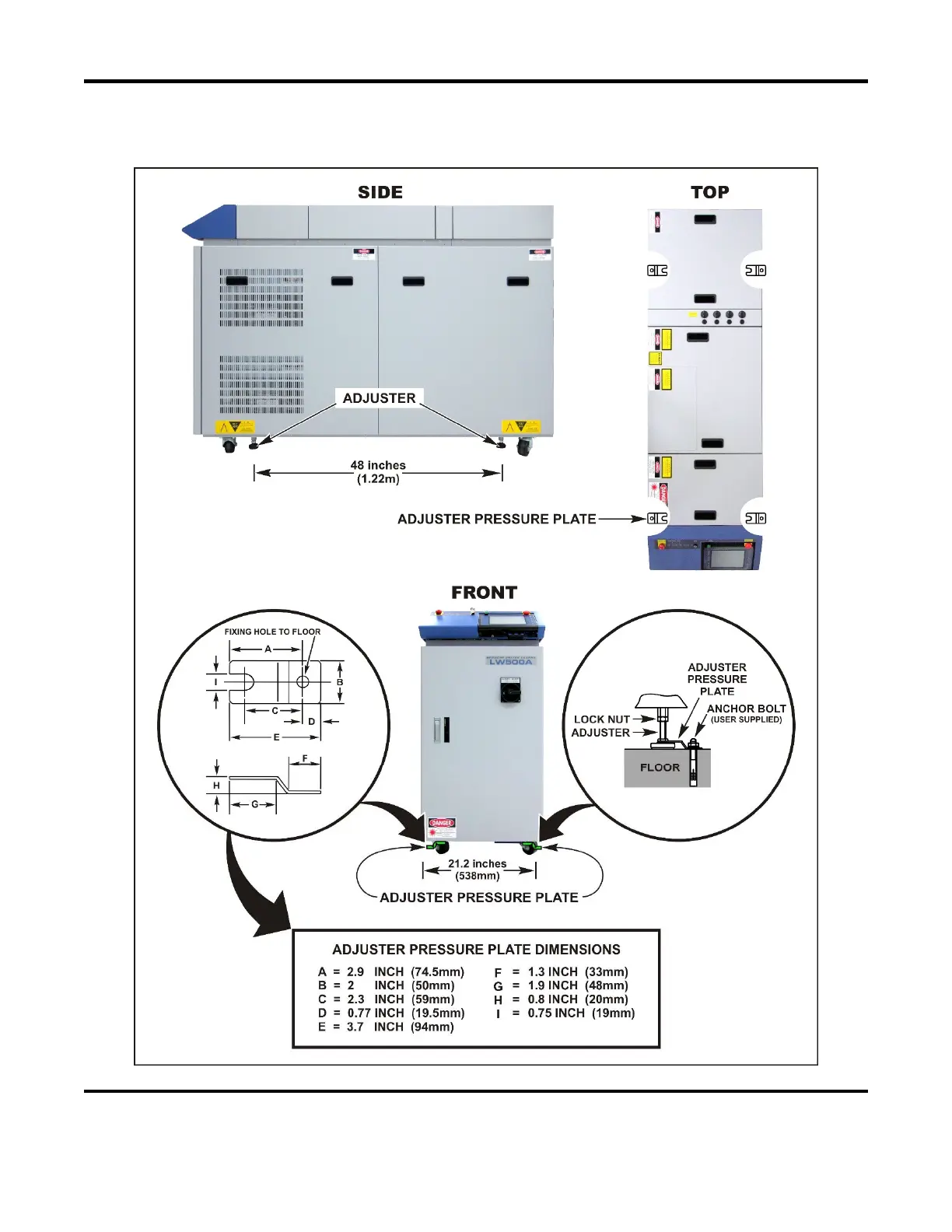 Secure the Laser to the floor (optional) using the supplied AMYA # KC-1275C-3 adjuster pressure plates.