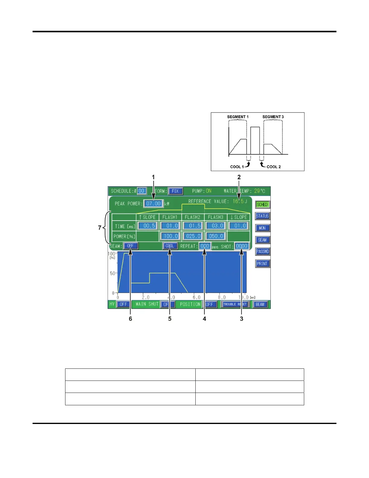 – Sets the reference value of the Peak Power laser output. The actual programmed