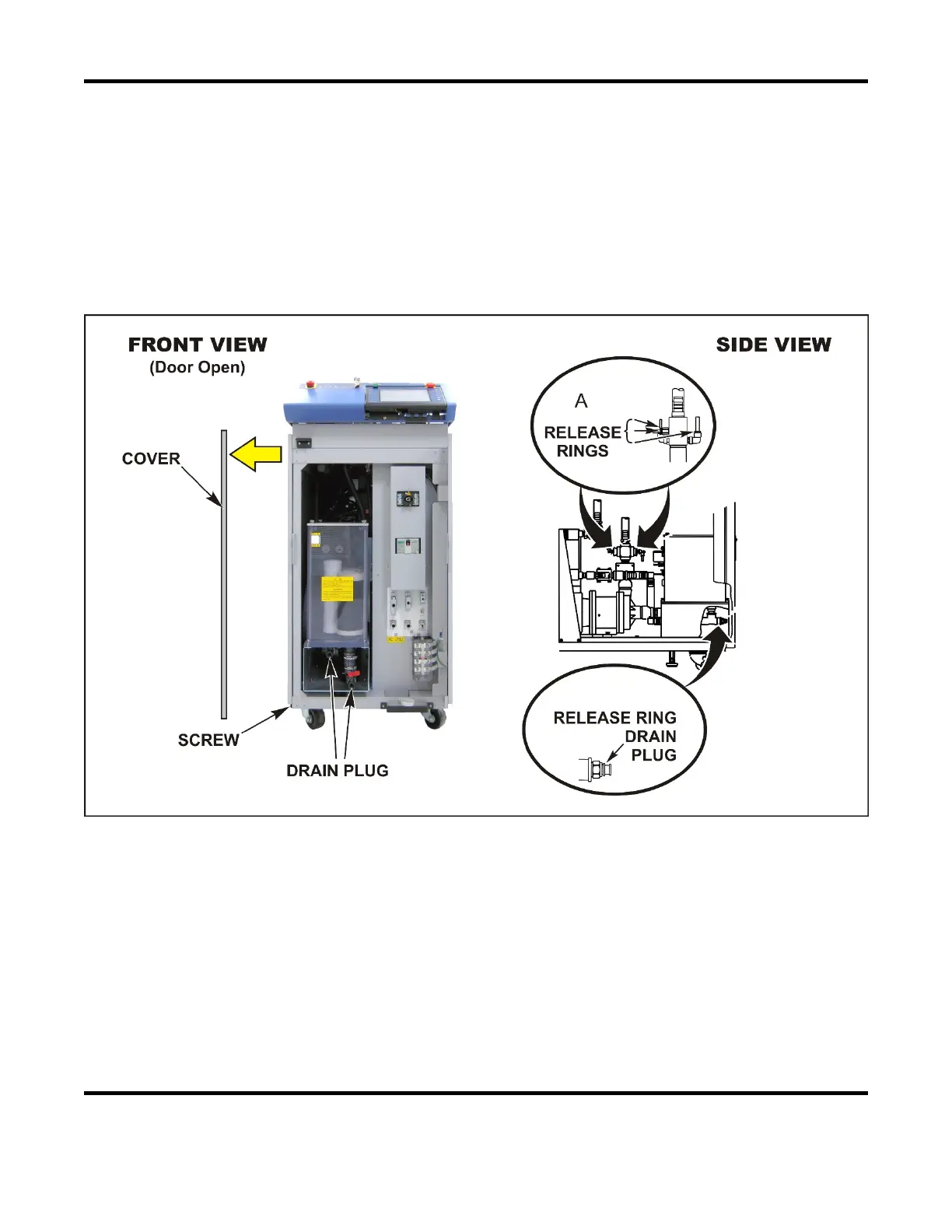 7. Place a pan under the Drain Plugs under the front of the Laser.