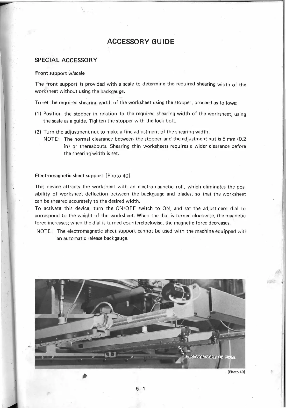 Amada M-1245 - Accessory Guide; Front Support with Scale; Electromagnetic Sheet Support