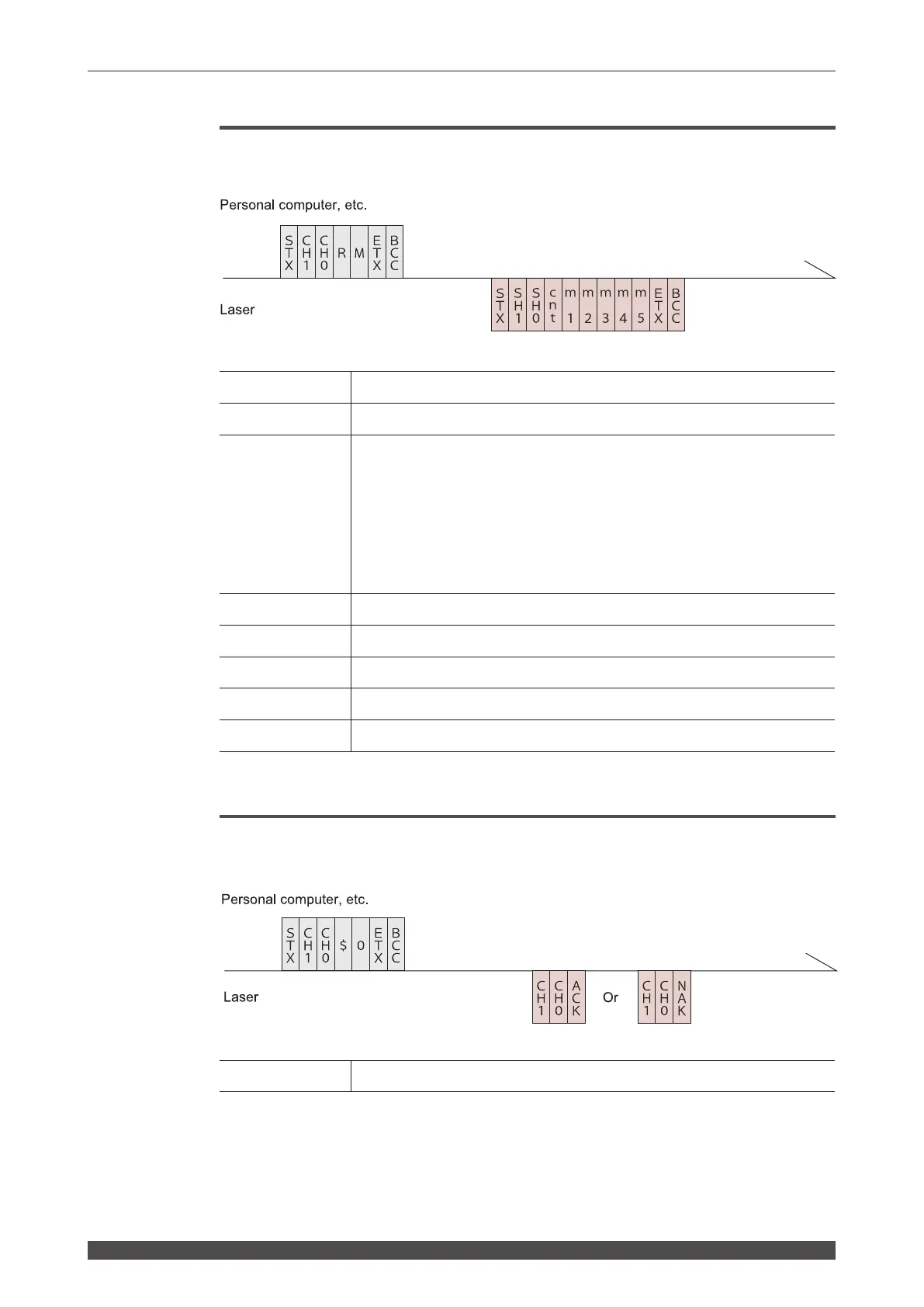 The command (code: $0) to start a laser light output is explained below.