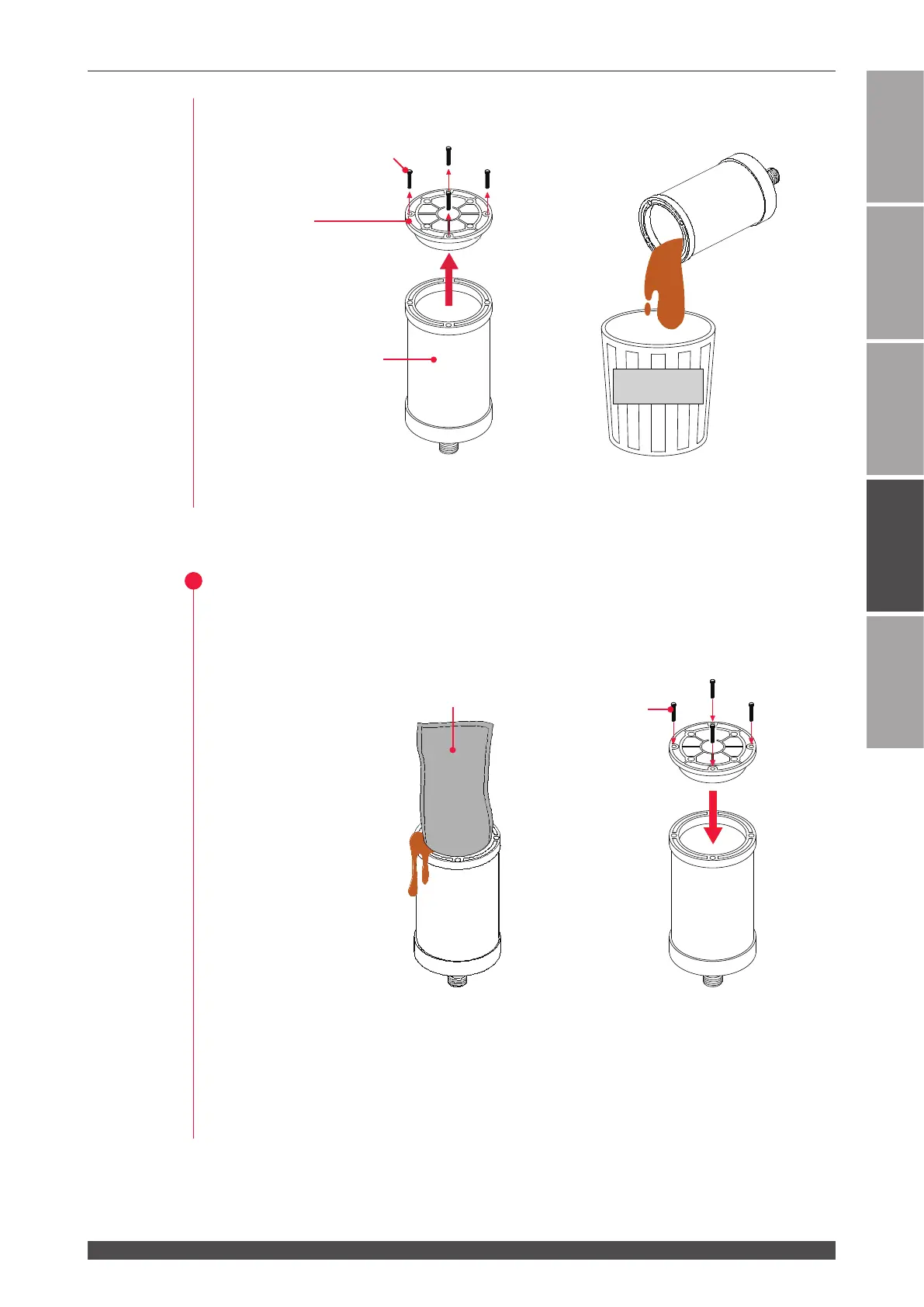 - Take care not to spill the ion-exchange resin. Wipe off the ion-exchange