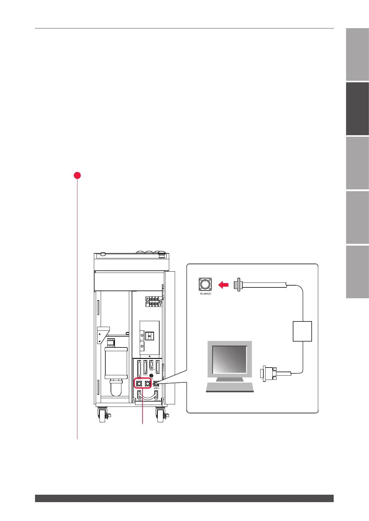 (1) Connect the RS-485 cable to the RS-485 (1) or RS-485 (2) connector of the main
