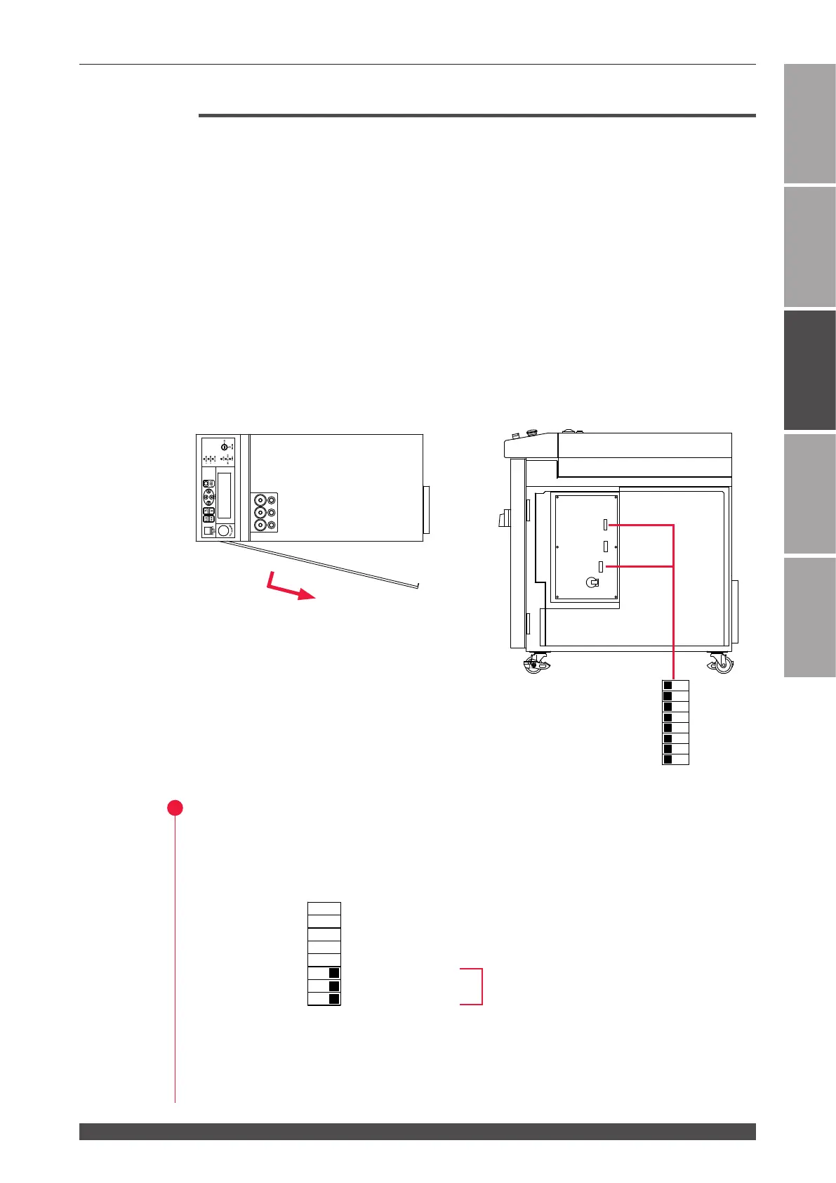 (1) Remove the side cover of the main unit and set No.6, No.7, and No.8 of DIP