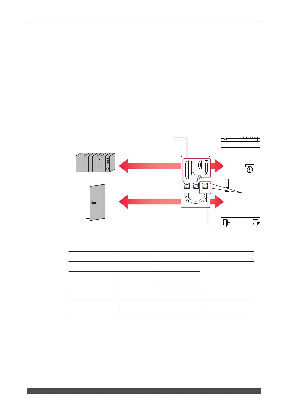 Connect the PLC to the EXT.I/O (1), (2) or (3) and EMERGENCY STOP connectors
