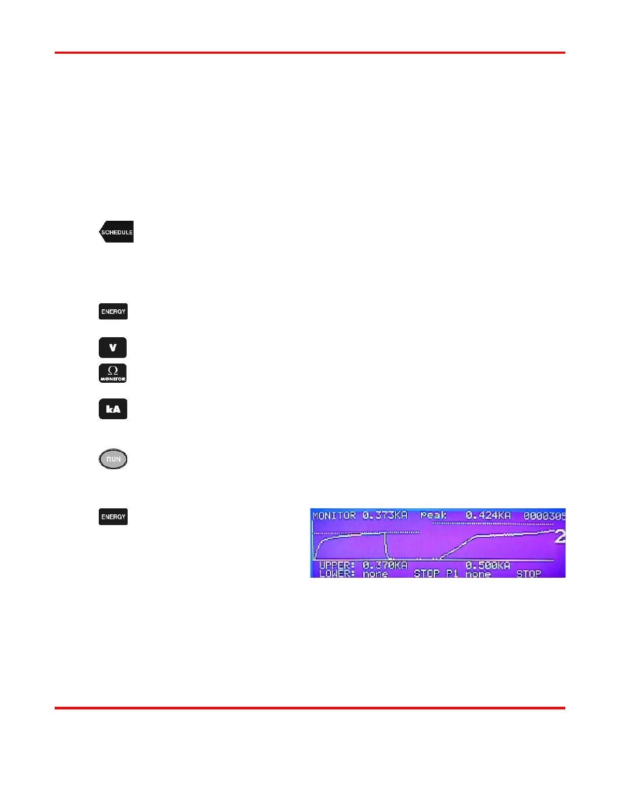 Push the ENERGY button to monitor the waveforms for voltage, resistance, current,