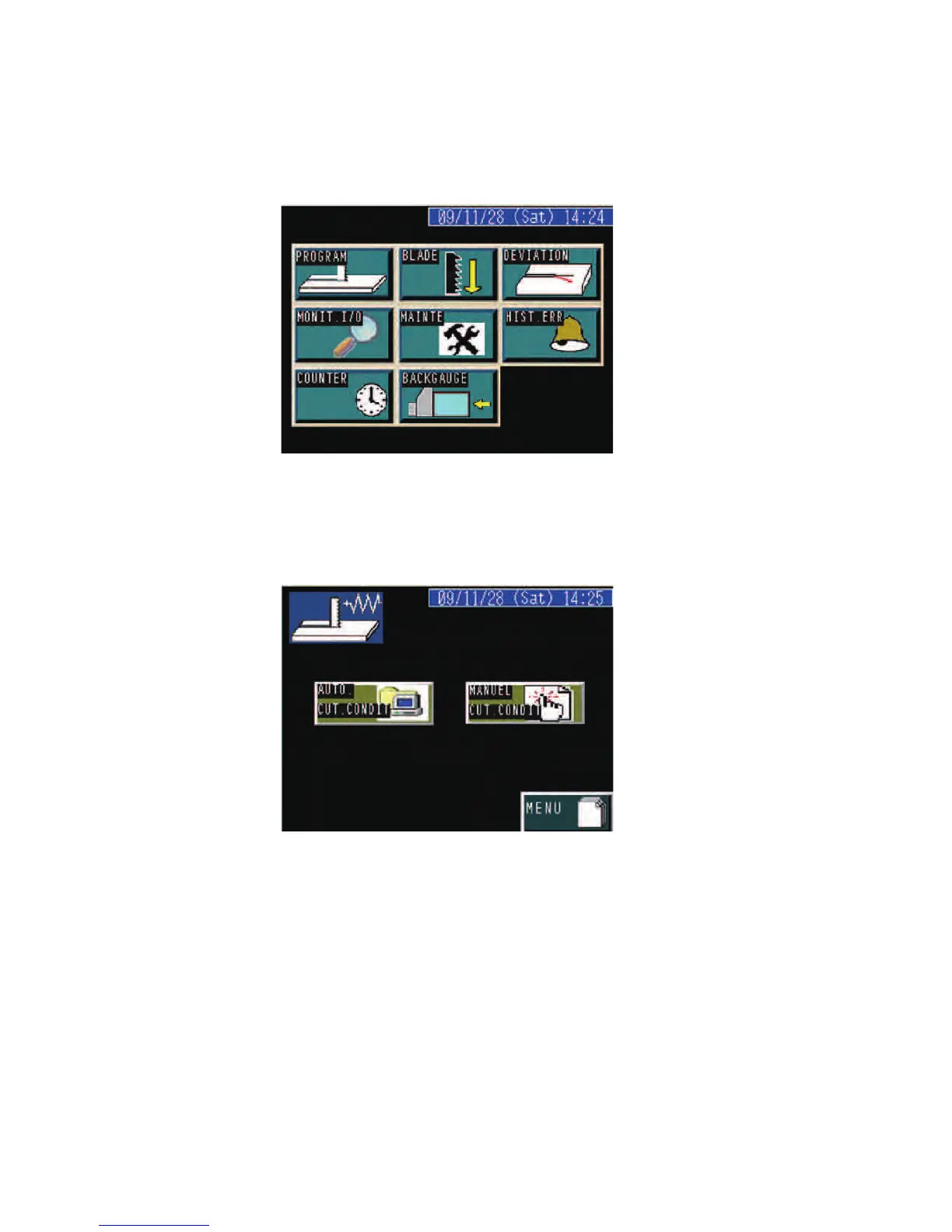 When manually setting the cutting conditions, press the MANUAL CUT
