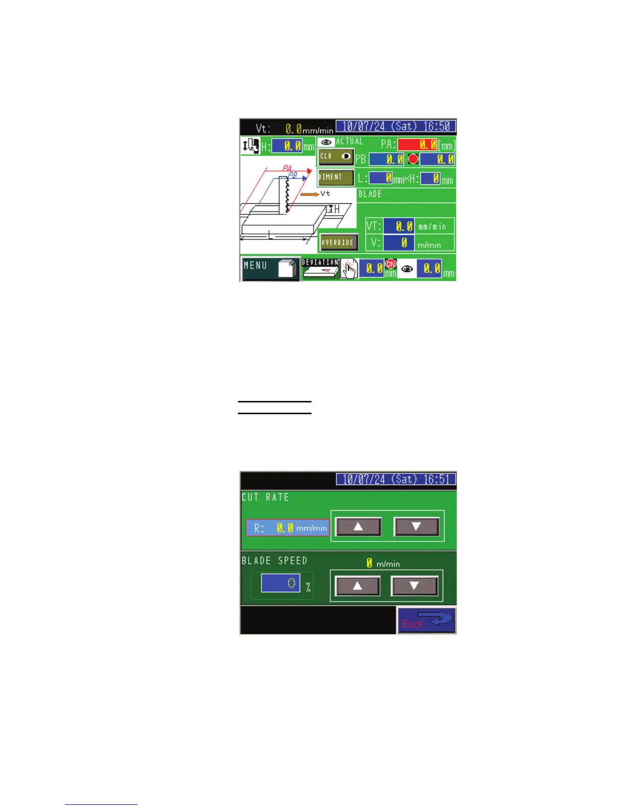 blade, press the OVERRIDE button to open the OVERRIDE display, and