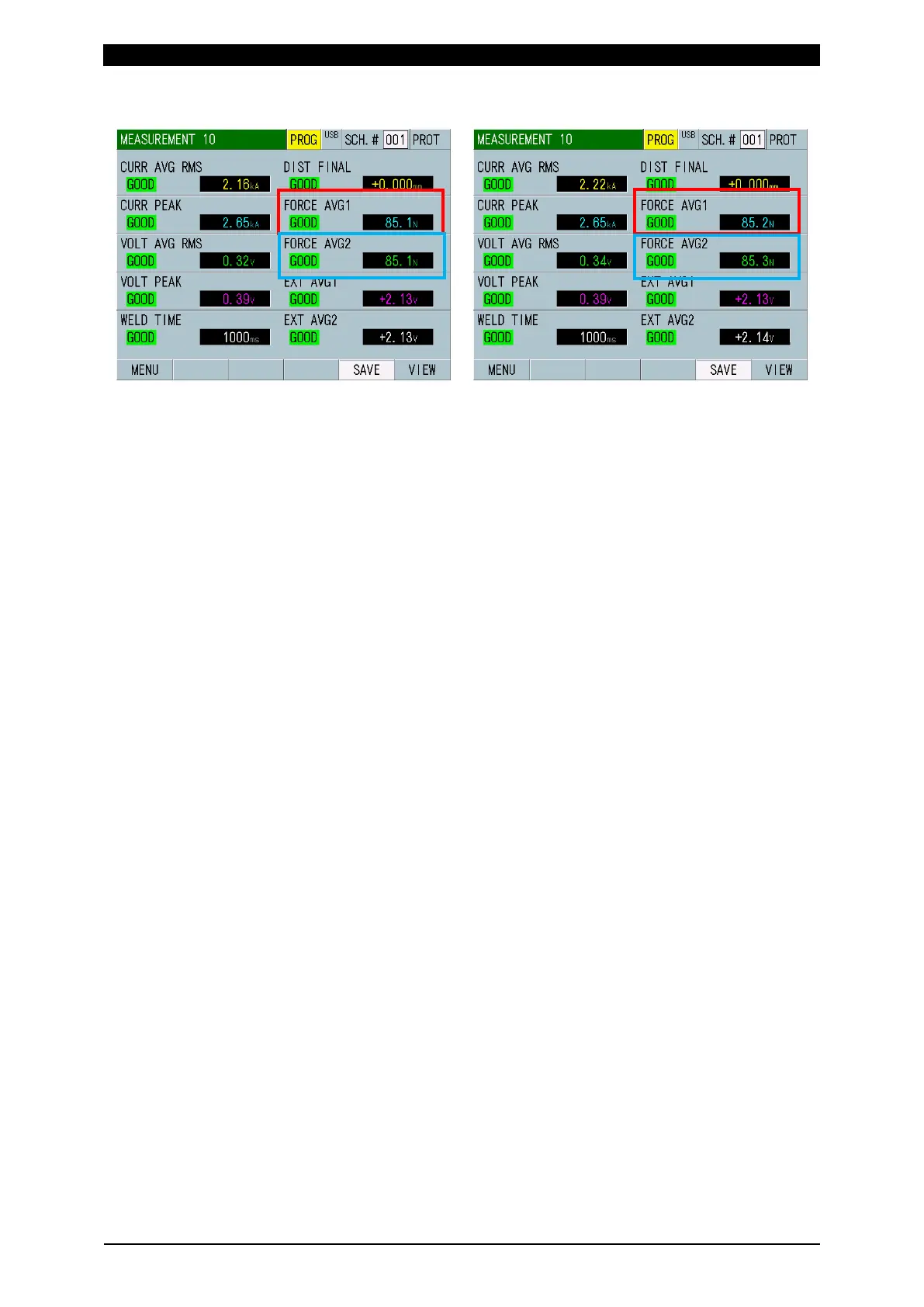 3) Left: Measured value before recalculation Right: After recalculation