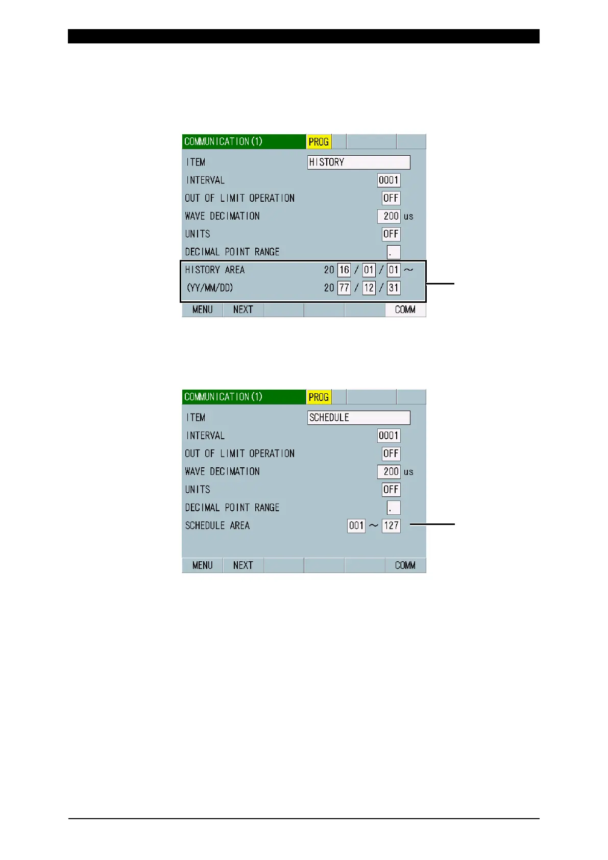 Shown when you have selected HISTORY or HISTORY OUT OF LIM for ITEM.