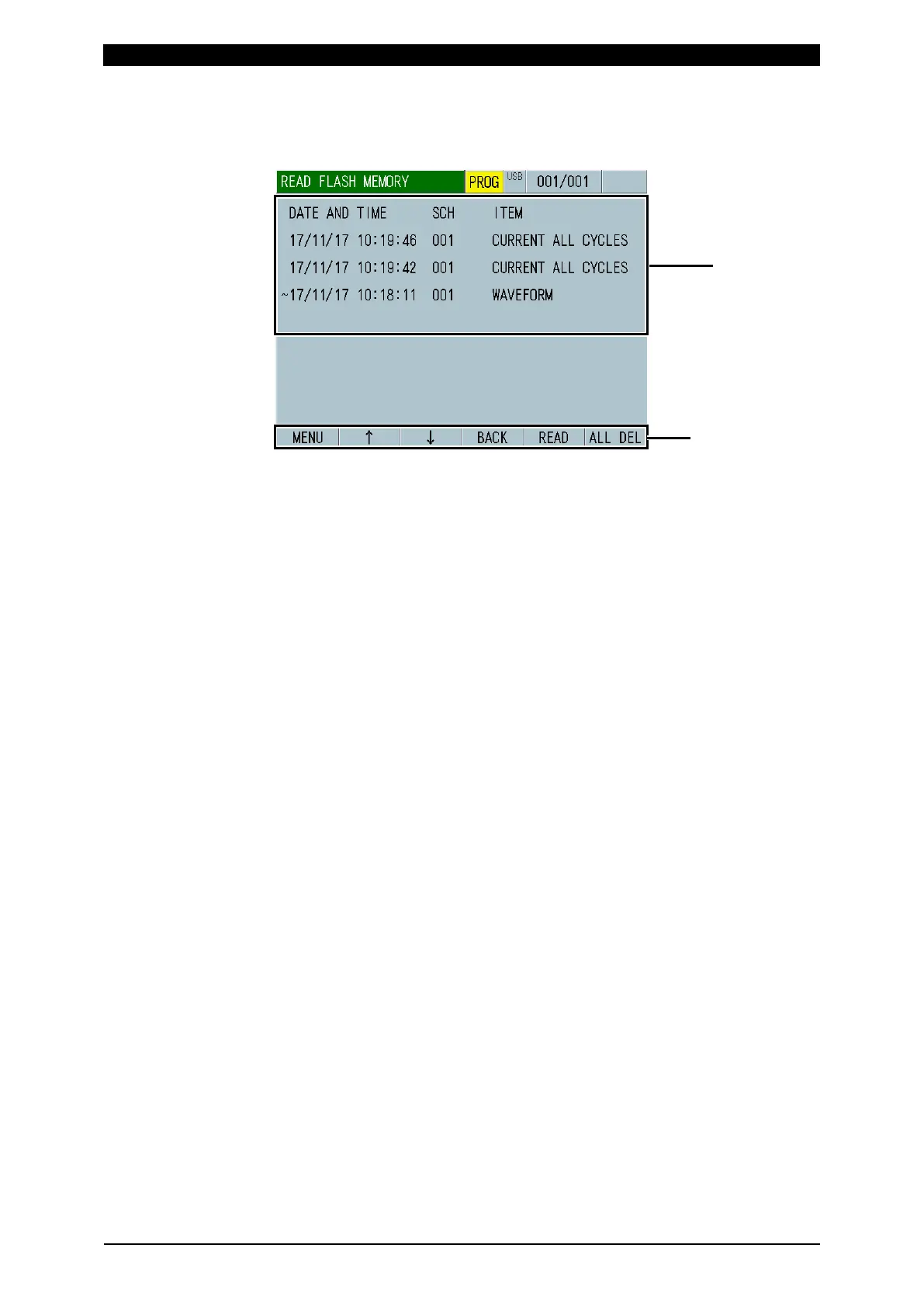 WAVEFORM, CURRENT ALL CYCLE and FORCE ALL CYCLE can be read.