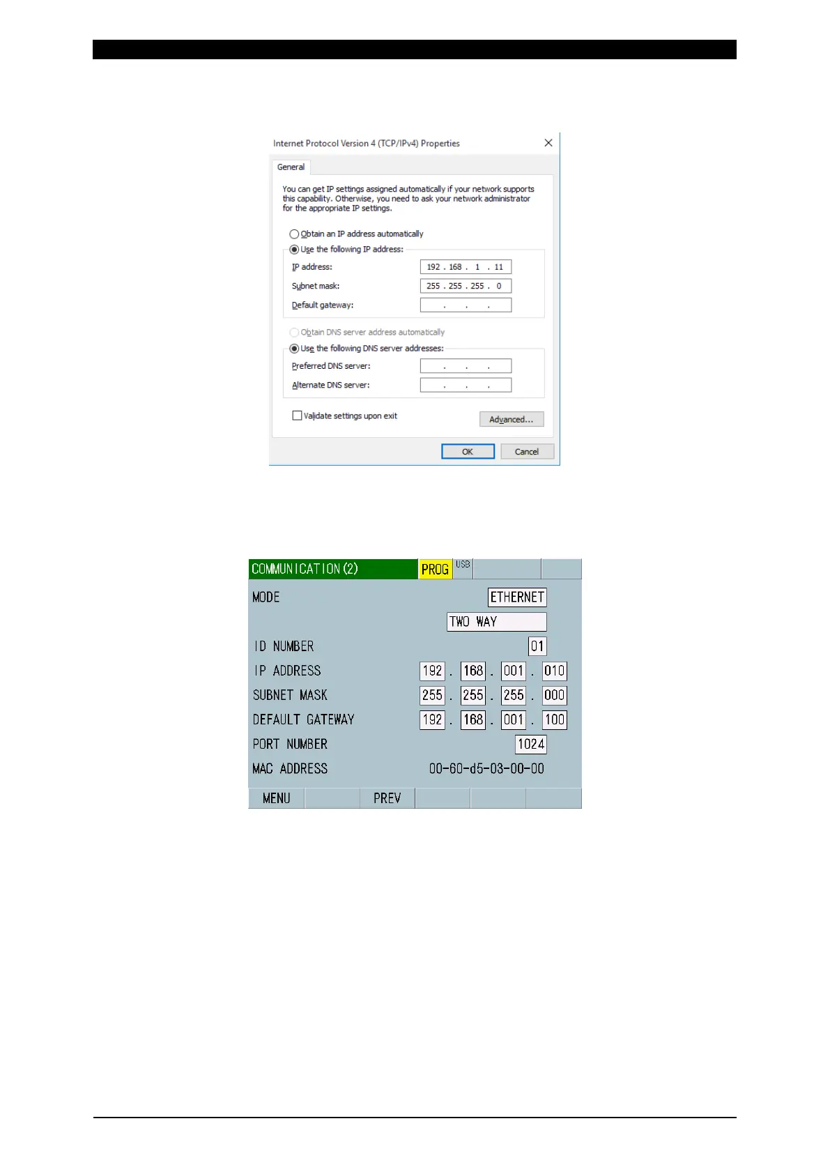 7) Input the IP address. Set the IP address as shown below and click the [OK]