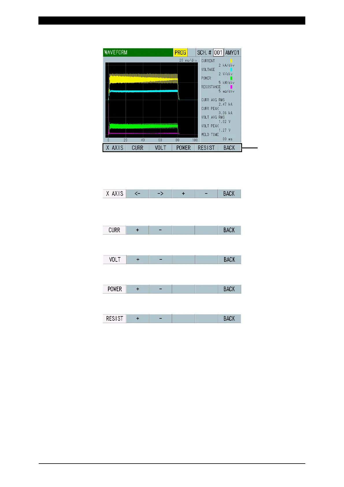 CURR: Touching this makes it possible to adjust the scale of the vertical axis