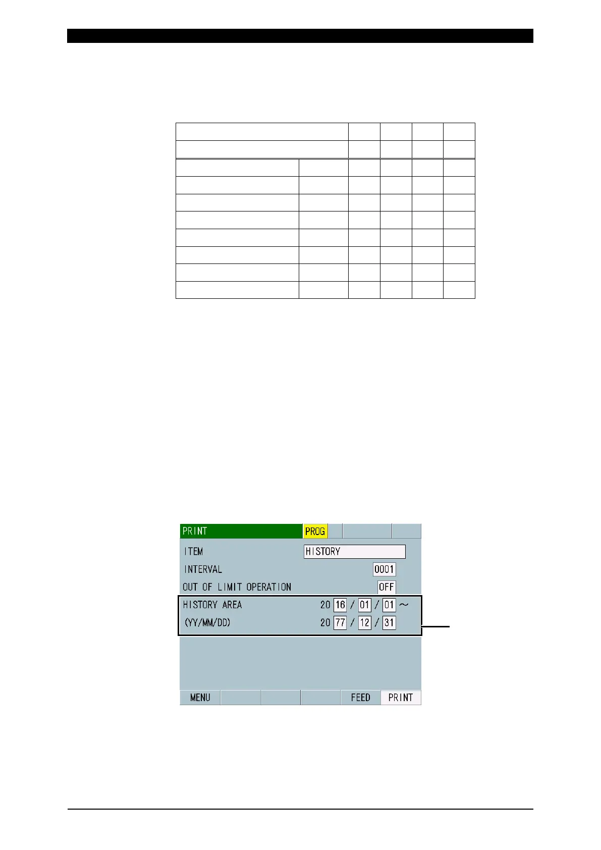 Shown when you have selected HISTORY or HISTORY OUT OF LIM for ITEM.