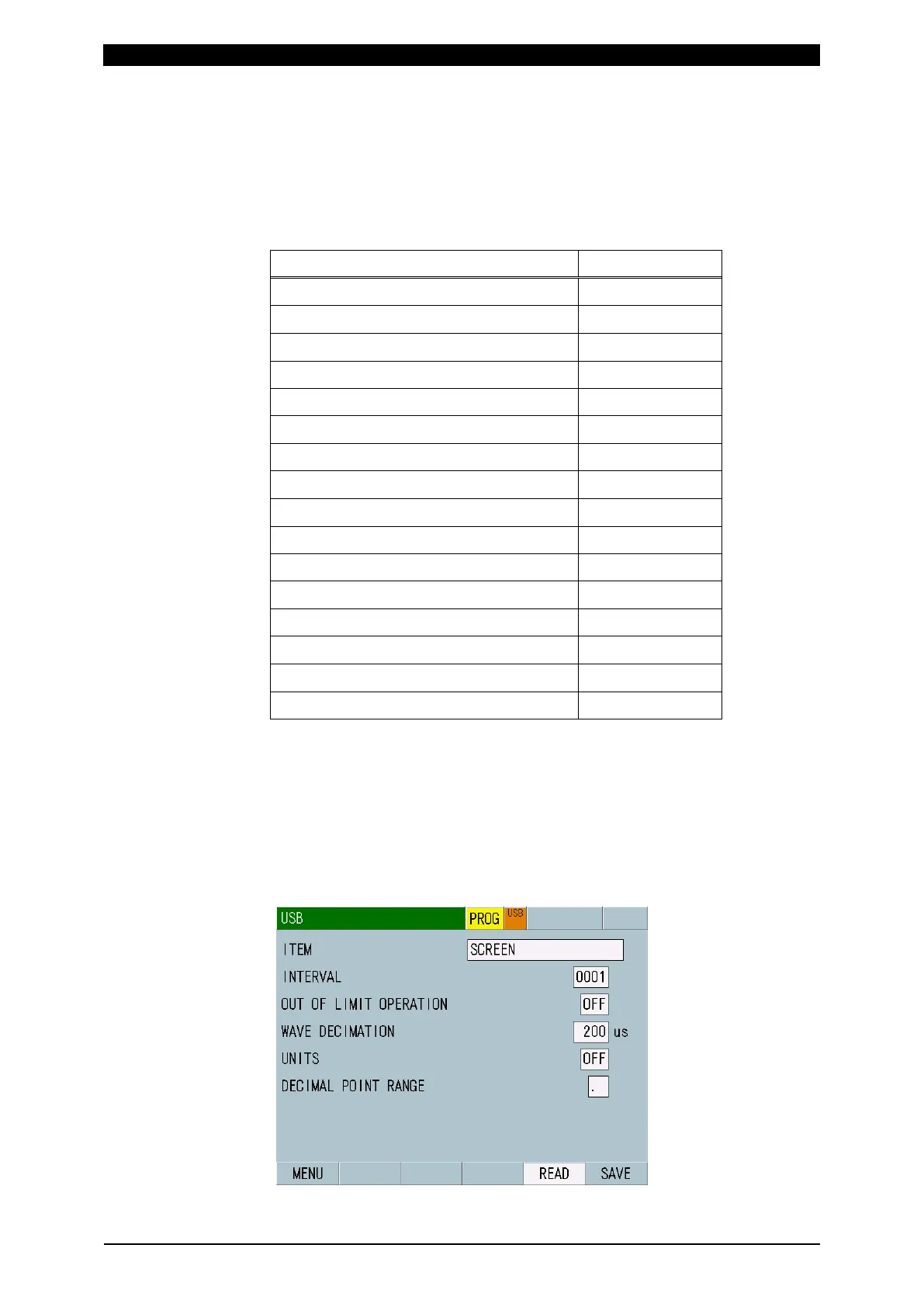 SAVE: Touching this performs writing the item selected for ITEM in the USB