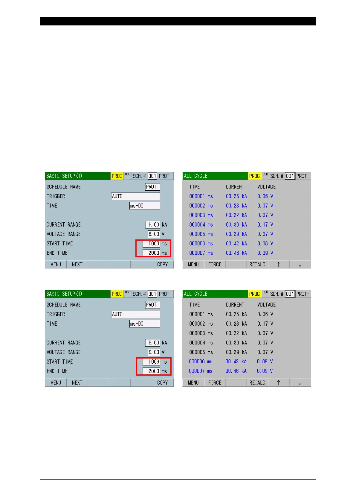calculation interval after changing the start and end cycle (MEAS START,
