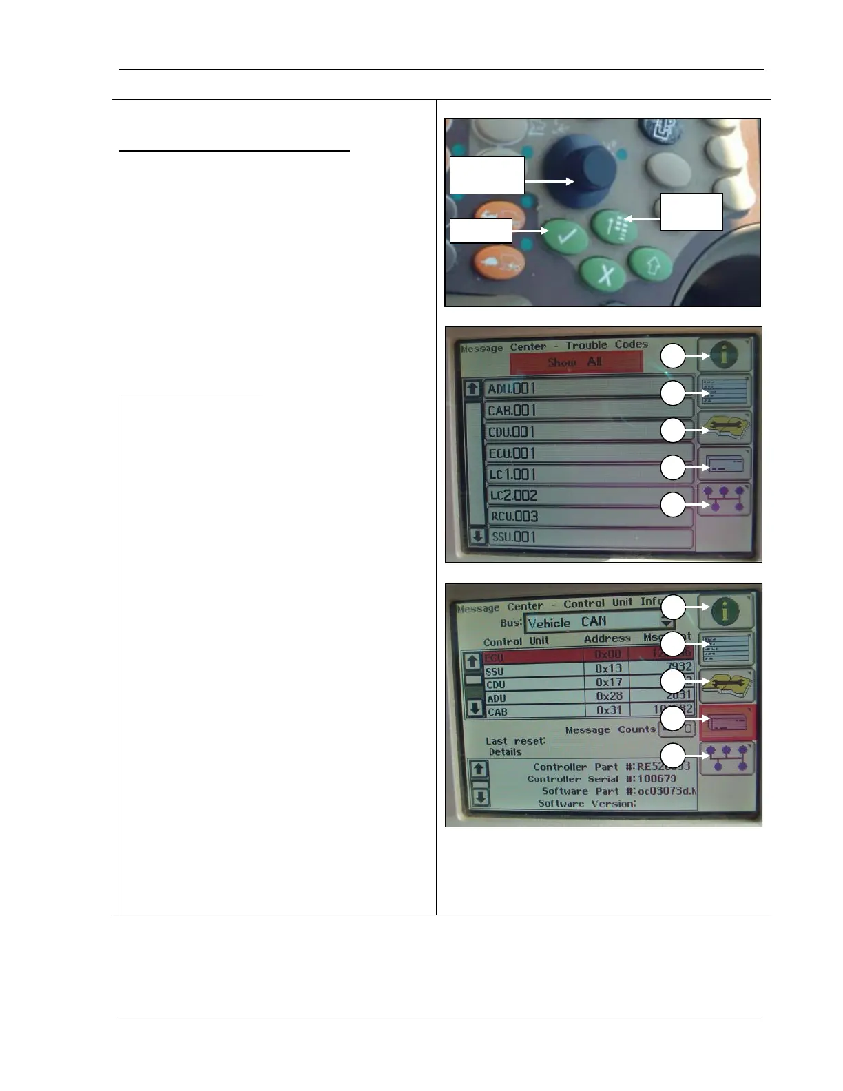 message counts, controller part numbers and