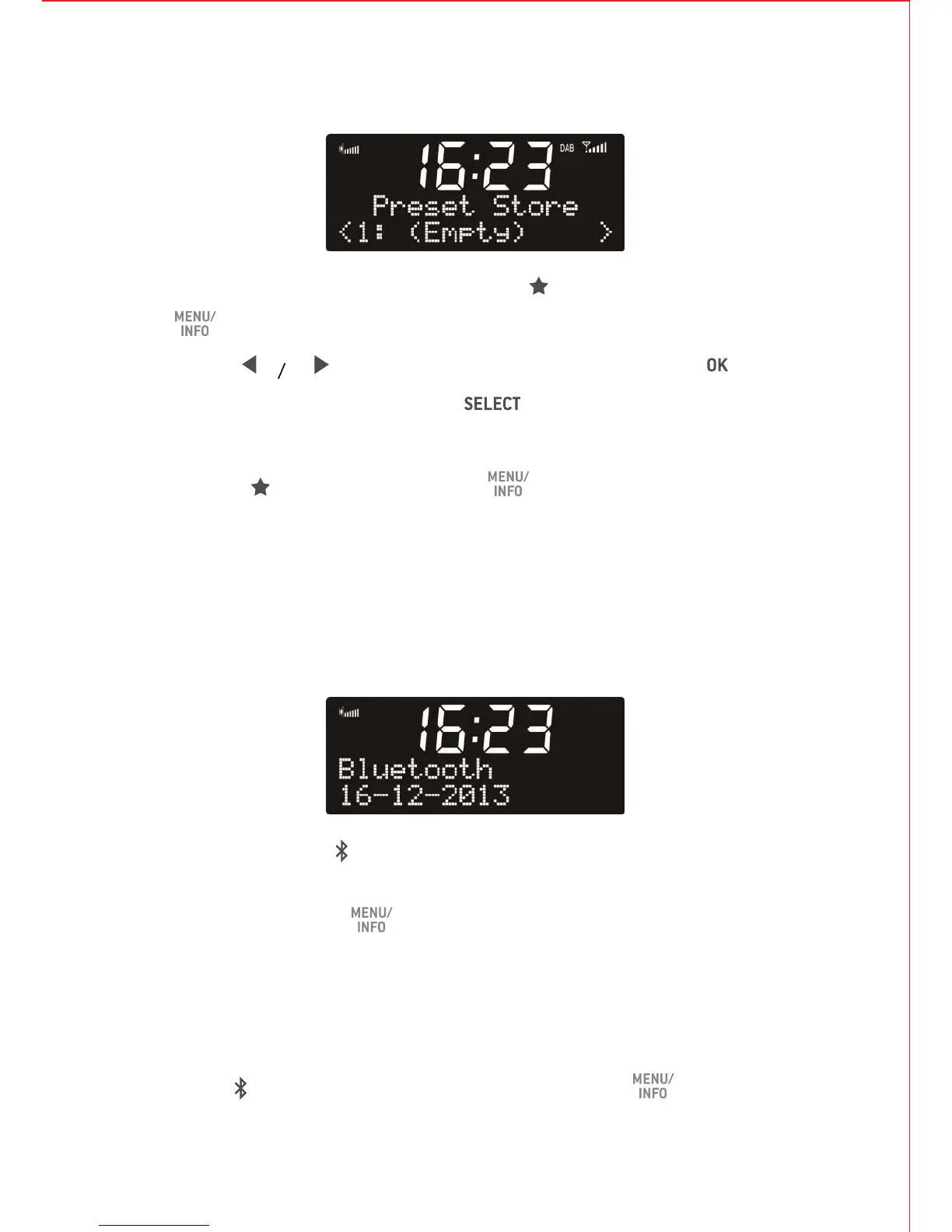 to go to menu, then choose ‘ Preset store’ to save the station.