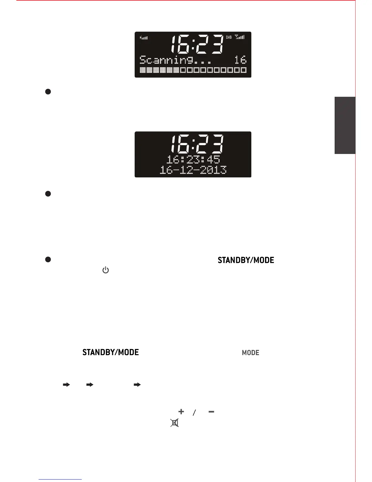 Første gang du bruger enheden, vil radioen automatisk gå i DAB-
