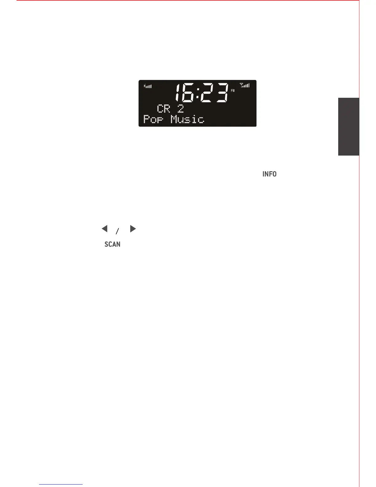 Første række tekst er frekvensen eller navnet på FM-kanalen.