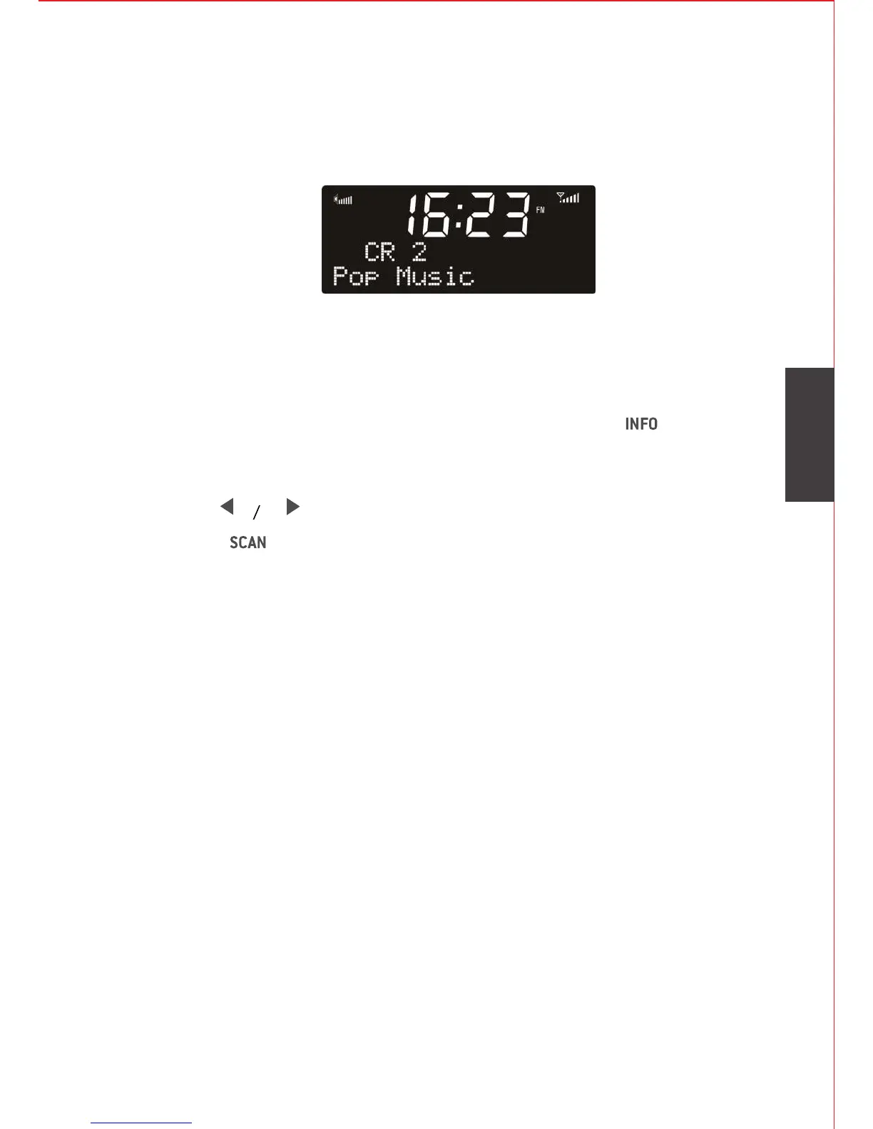 Den første tekstraden er frekvensen eller navnet på FM-stasjonen.