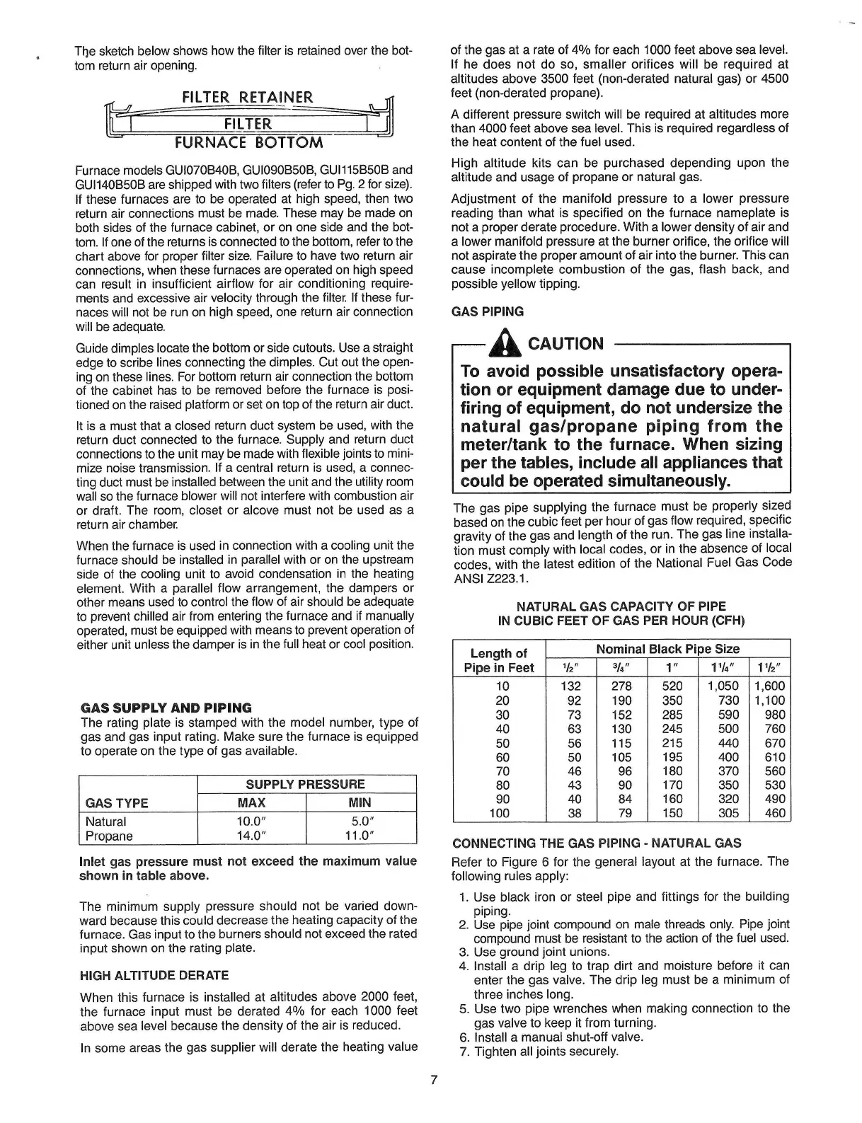 Amana AIR COMMAND 80 - BURNER OPERATION AND FLAME CHECK; GAS SUPPLY AND PIPING MANAGEMENT; Natural Gas Piping Installation