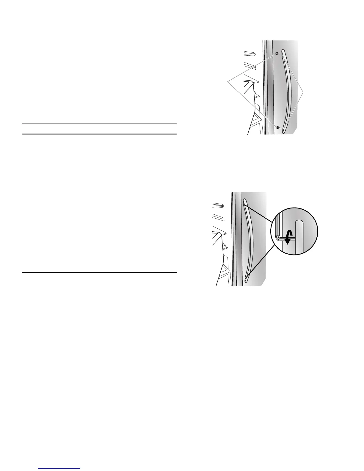 2. Ouvrir la porte du congélateur. Placer la poignée sur les vis