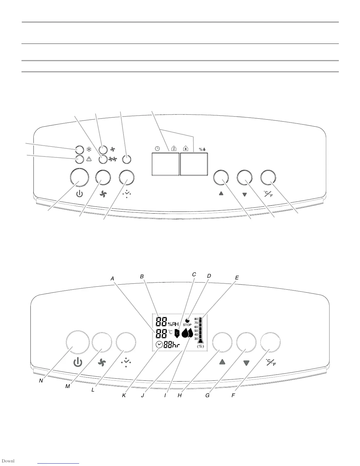 E. Affichage du réglage d’humidité entre 30 % et 80