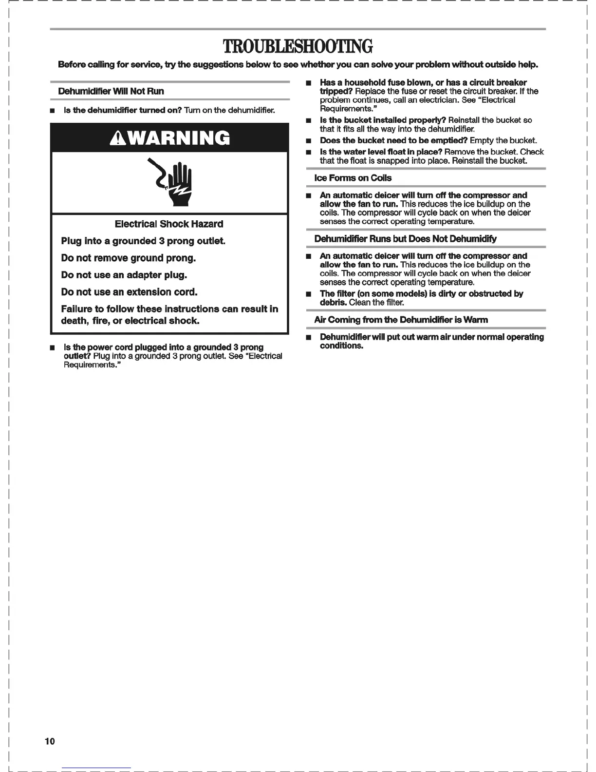 Amana D970E - Ice Formation and Warm Air; Assistance and Service; Obtaining Replacement Parts; Contacting Customer Support