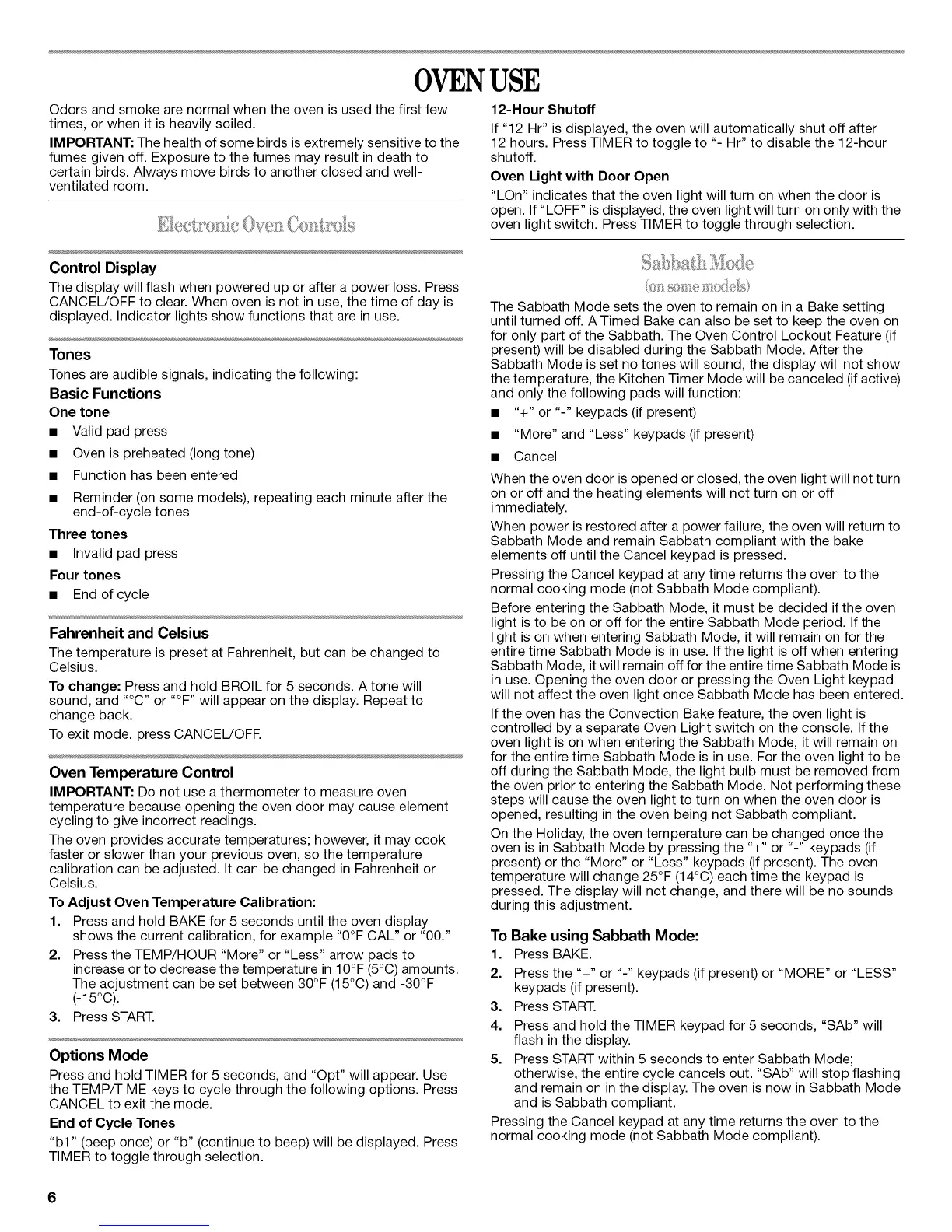 and remain on in the display. The oven is now in Sabbath Mode