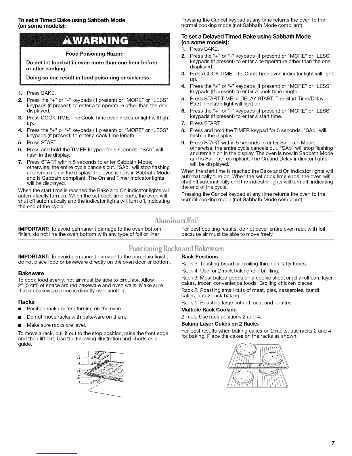 cakes, and 2-rack baking.