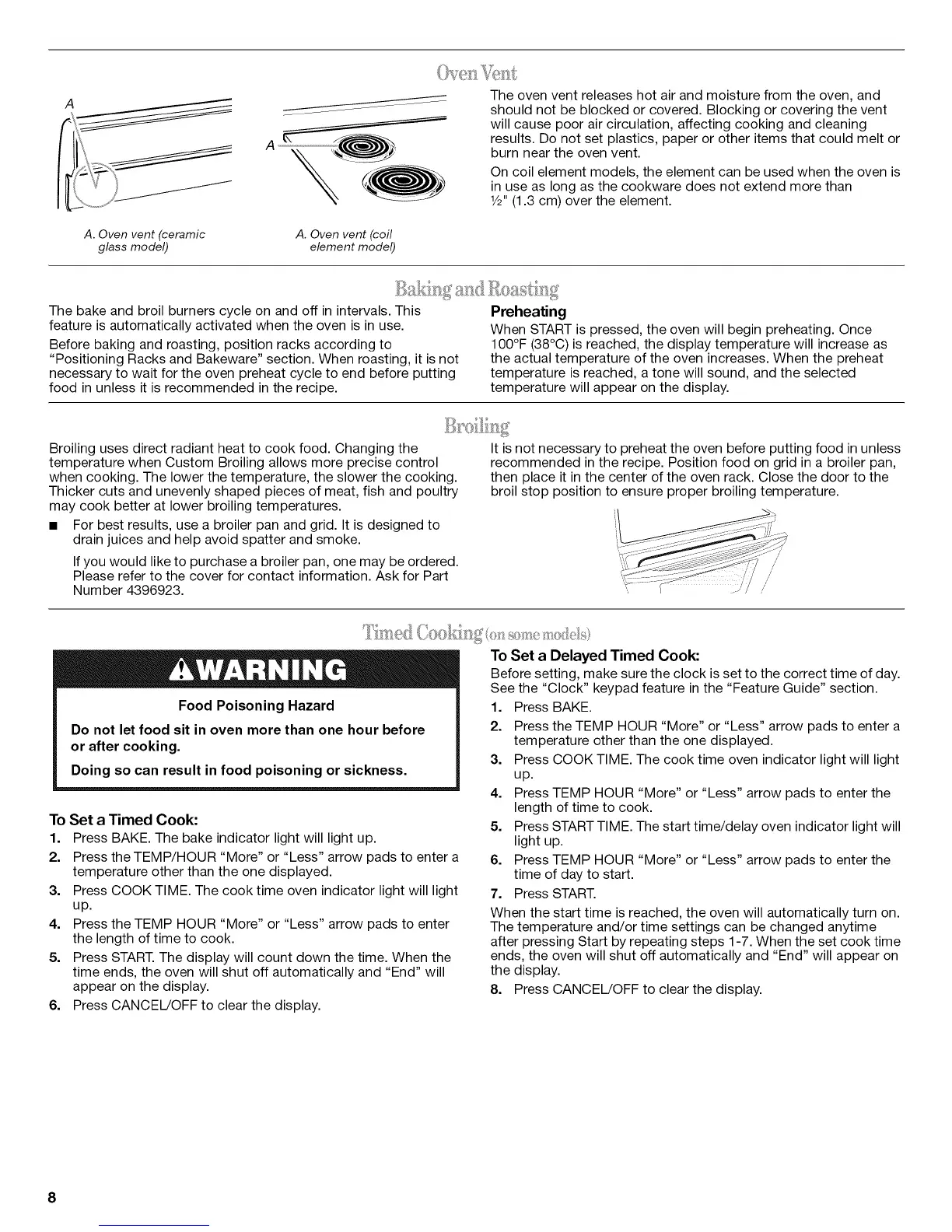 "Positioning Racks and Bakeware" section. When roasting, it is not