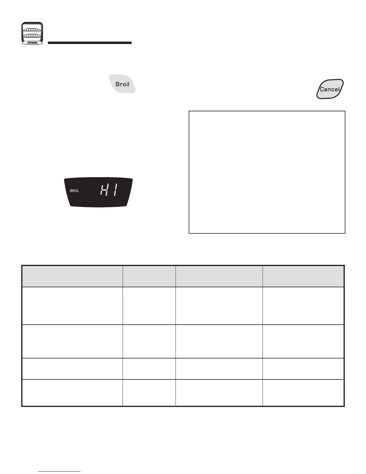 2. Press the ▲ pad to set HI broil or press the ▼ pad to set