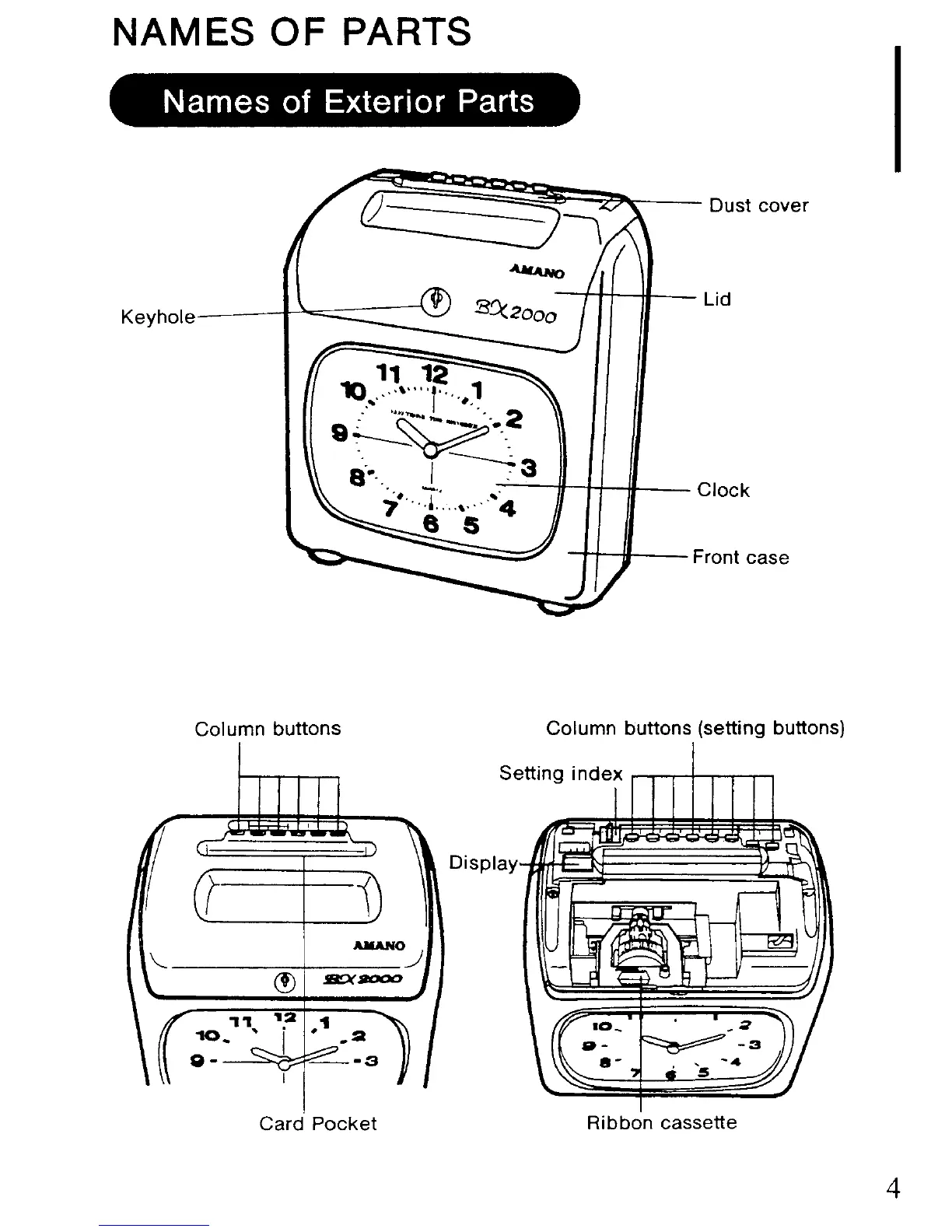 Amano BX 2000 - Names of Parts; Names of Exterior Parts