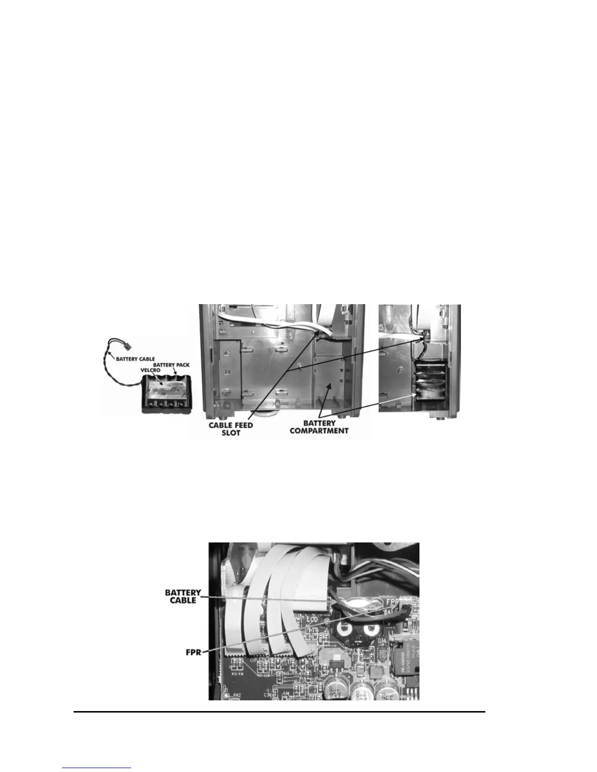 7. Connect the battery cable to FPR on the PC Board.