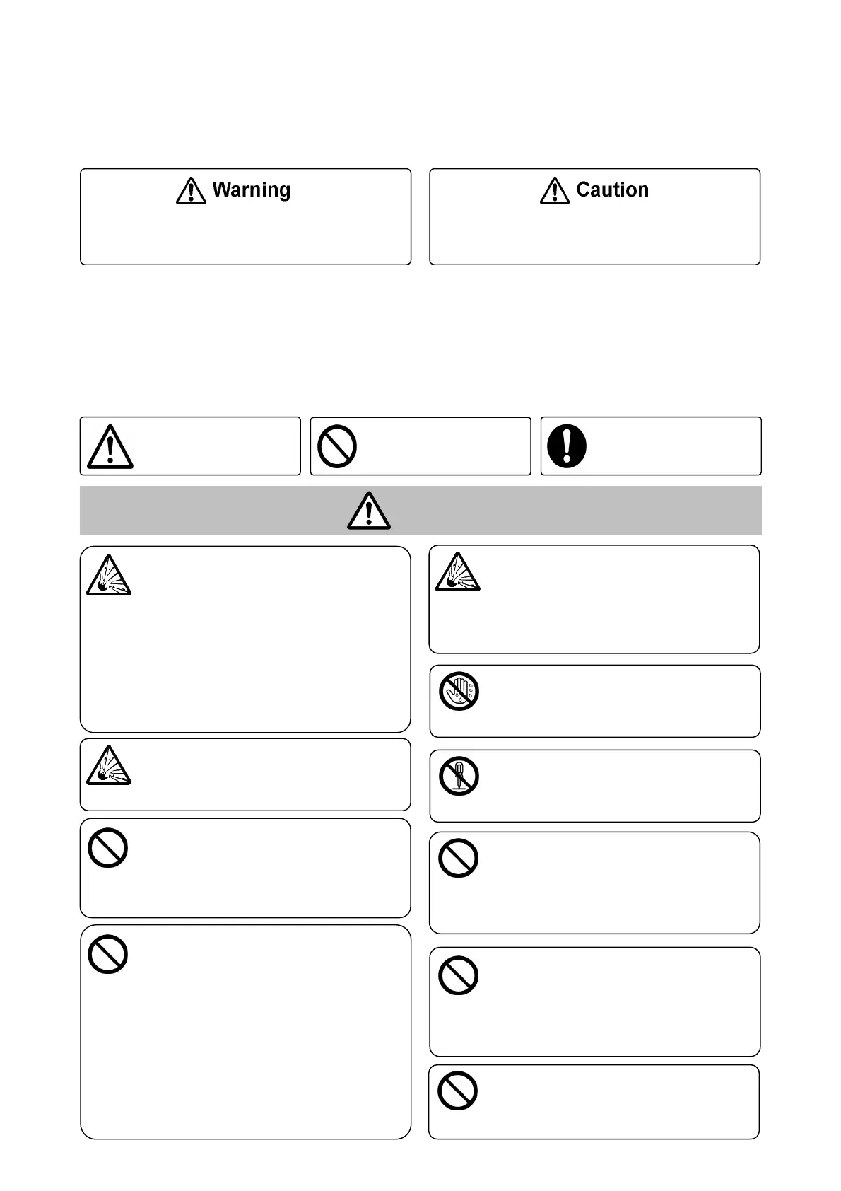 Precautions in this manual are classified according to degree and type of danger, as shown below. Be