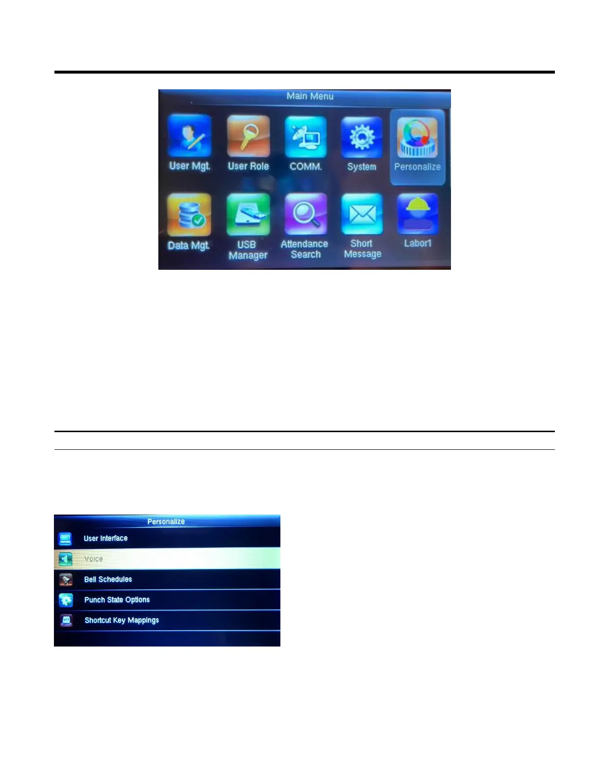 2. Using the arrows highlight the Personalize icon and then press OK.