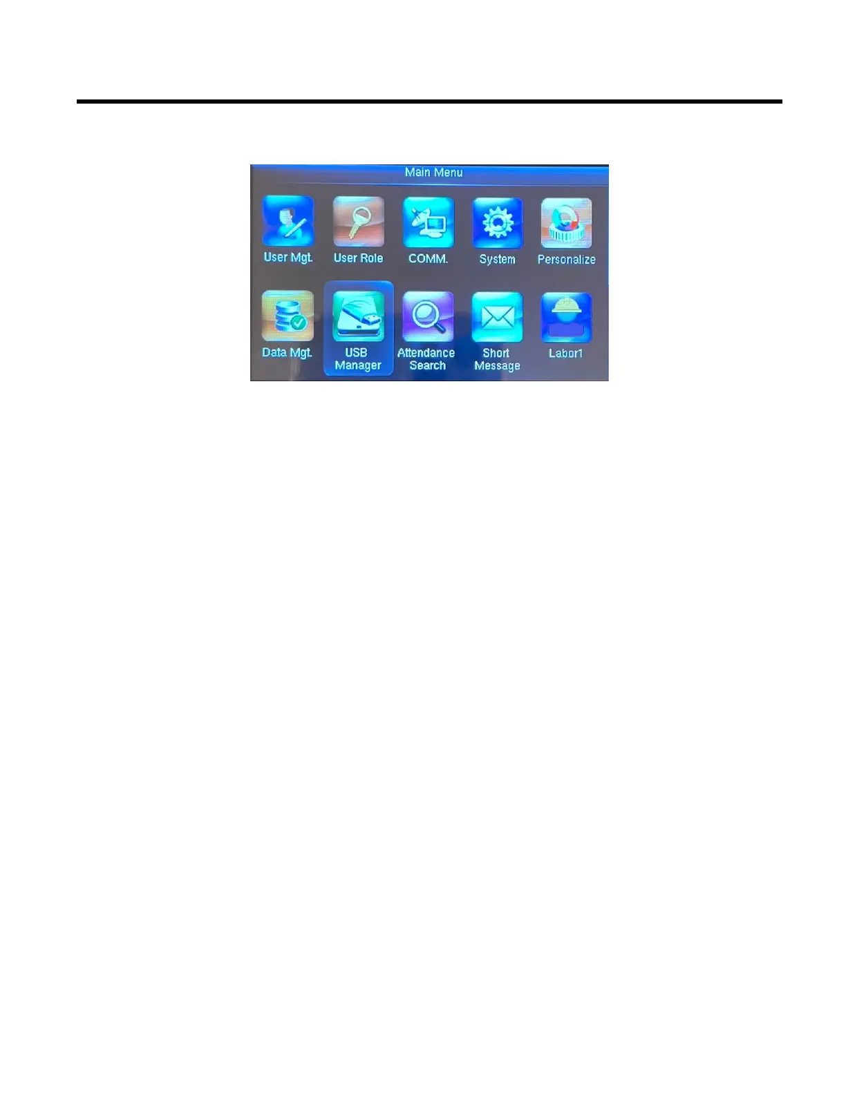2. Using the arrows highlight the USB Manager icon and then press OK.