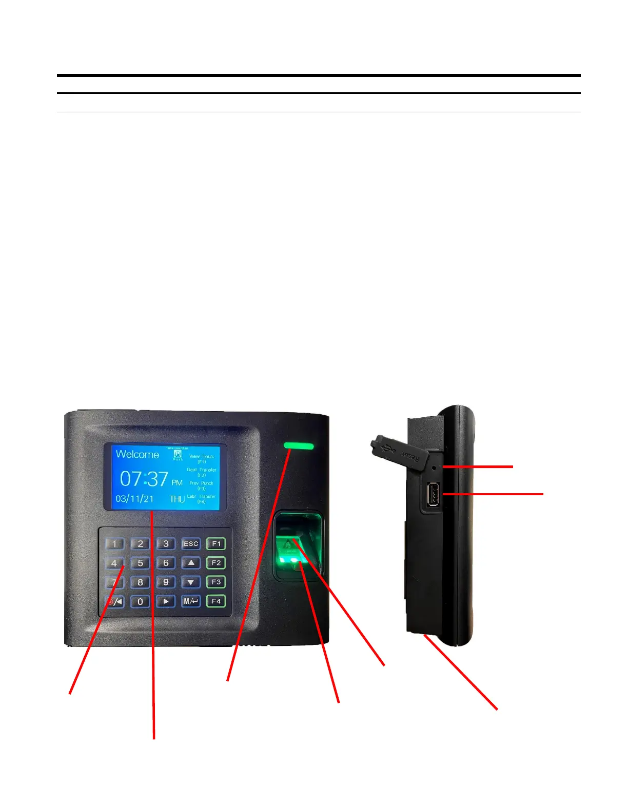 • Keypad: Used to input User ID, password, and perform menu operations.